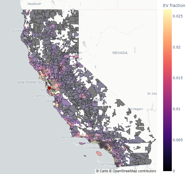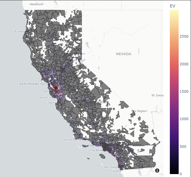 This animation graph shows the alternation of different resources used for power generation in the last ten years since we are concerned about if the energy resources to offer electric vehicles are environmentally friendly in California. As we can see there's a steady decline in fossile energies, namely natural gas, which is, however, still the most prevalent source of energy.